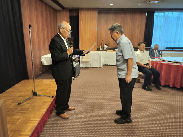 長年にわたり同窓会活動にご尽力頂いた山崎貞夫さんと長谷川和夫さんがご退任され、会長より感謝状並びに記念品を贈呈しました。
